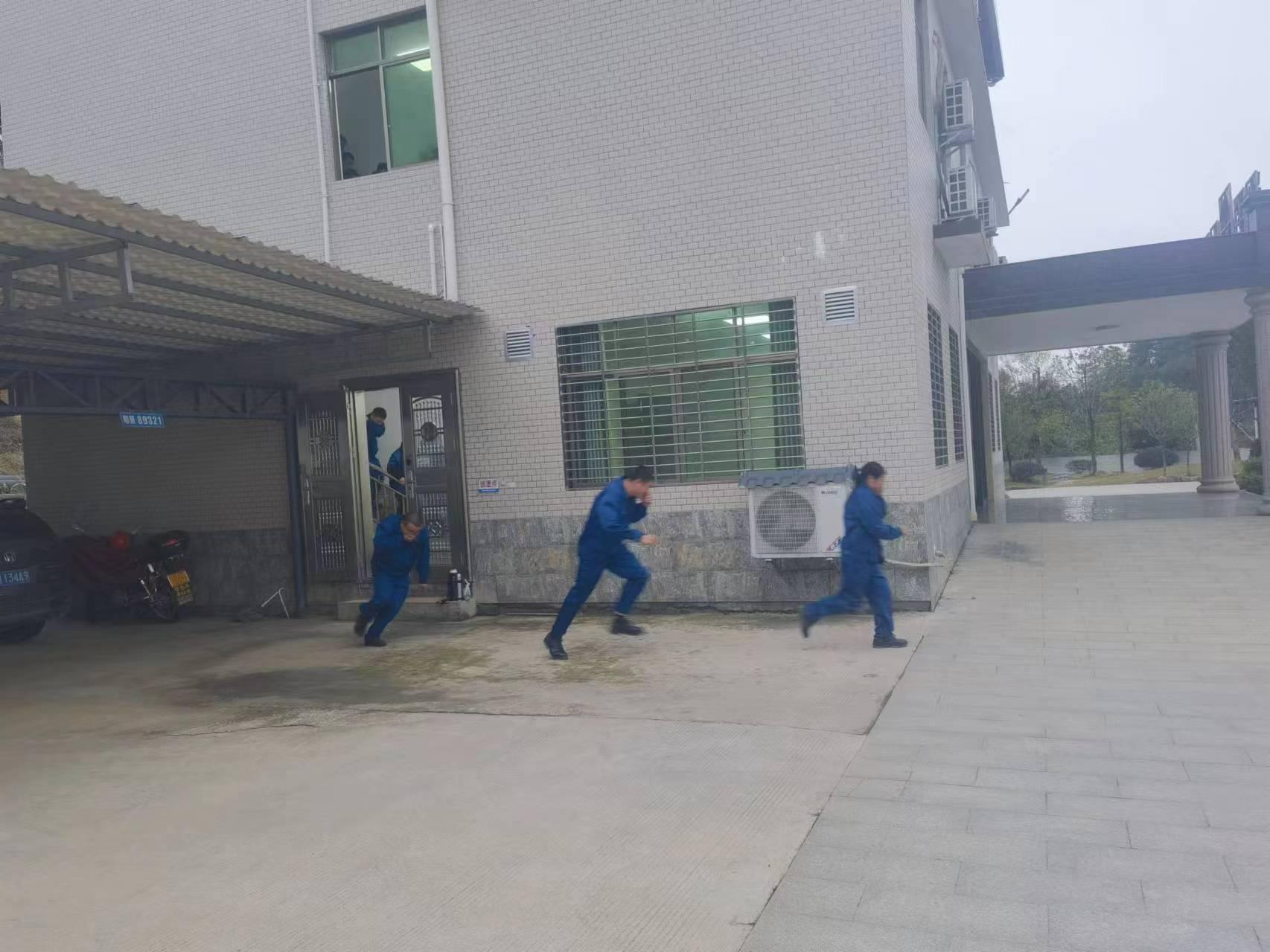 演練正式開始,模擬員工宿舍濃煙升起,火警報(bào)警聲響起,全體員工按照《消防應(yīng)急疏散預(yù)案》的要求,彎著腰,捂著口鼻,按指定安全消防通道,有序撤離至安全地點(diǎn)。