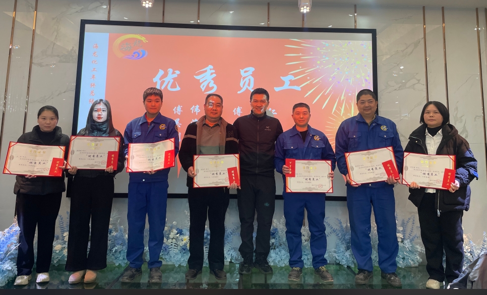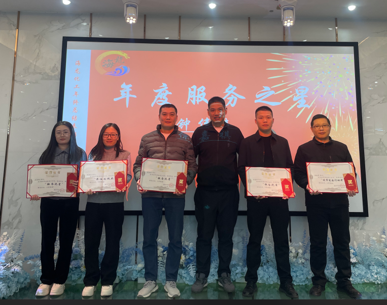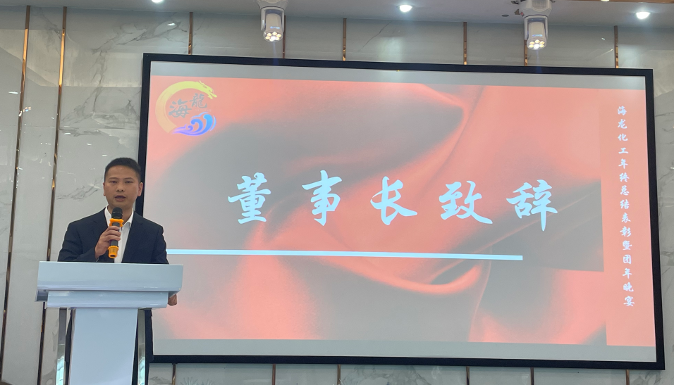 祥龍辭歲福澤厚,靈蛇納祥好運(yùn)來(lái)。海龍化工2024年終總結(jié)表彰大會(huì)暨團(tuán)年晚宴于1月14日宴慶樓酒店盛大召開(kāi)。會(huì)議旨在回顧公司的發(fā)展歷程及全面總結(jié)2024年工作成果,并為2024年取得優(yōu)異成績(jī)和為公司作出突出貢獻(xiàn)的管理人員、優(yōu)秀員工、優(yōu)秀團(tuán)隊(duì)等給予了表彰和頒獎(jiǎng)。