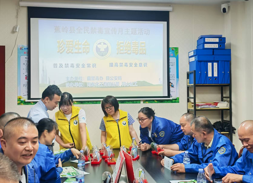 為切實(shí)提高廣大職工識(shí)毒、防毒、拒毒意識(shí),增強(qiáng)廣大職工自覺抵制毒品的能力,結(jié)合今年全民禁毒宣傳月的“健康人生、綠色無毒”的主題,6月10日,蕉嶺縣禁毒辦、蕉嶺縣公安局在海龍化工廠區(qū)開展“珍愛生命,拒絕毒品”為主題的禁毒宣傳活動(dòng)。