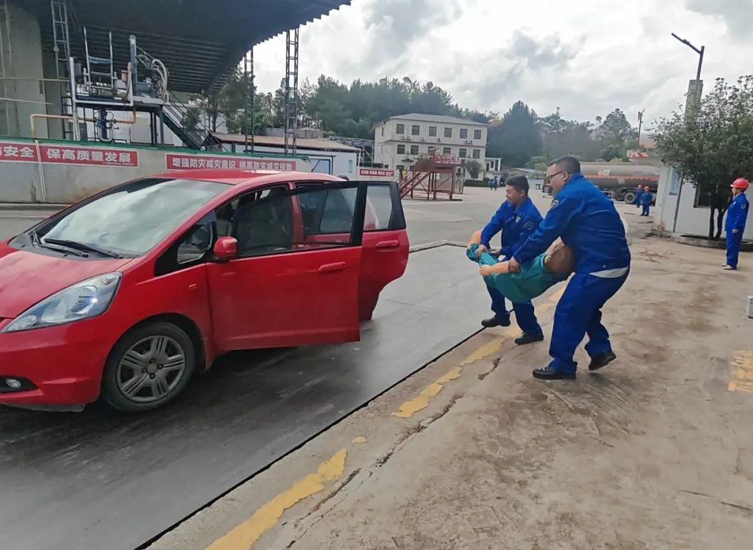 接報(bào)后,縣應(yīng)急管理局立即組織相關(guān)人員進(jìn)行分析研判,向各相關(guān)部門發(fā)布預(yù)警信息,同時(shí)啟動(dòng)?;飞a(chǎn)安全事故IV級(jí)應(yīng)急響應(yīng)并趕赴現(xiàn)場(chǎng)成立臨時(shí)指揮部??h消防救援大隊(duì)3輛消防車率先抵達(dá),消防員利用泡沫槍、干粉槍等消防裝備進(jìn)行滅火和隔離、稀釋泄漏物;縣醫(yī)療救護(hù)組同步跟進(jìn),在現(xiàn)場(chǎng)設(shè)立臨時(shí)救治點(diǎn),演練中毒人員急救轉(zhuǎn)運(yùn);縣應(yīng)急管理局高效履職,及時(shí)對(duì)物資進(jìn)行調(diào)配;縣公安局和文福鎮(zhèn)迅速實(shí)施交通管制和群眾疏散;縣生態(tài)環(huán)境局監(jiān)測(cè)人員快速布設(shè)監(jiān)測(cè)點(diǎn)位,實(shí)時(shí)監(jiān)控空氣質(zhì)量;氣象部門提供精準(zhǔn)風(fēng)向風(fēng)速數(shù)據(jù),為救援決策提供支持。各部門在指揮部的統(tǒng)一調(diào)度下快速響應(yīng)、密切配合。